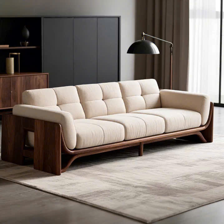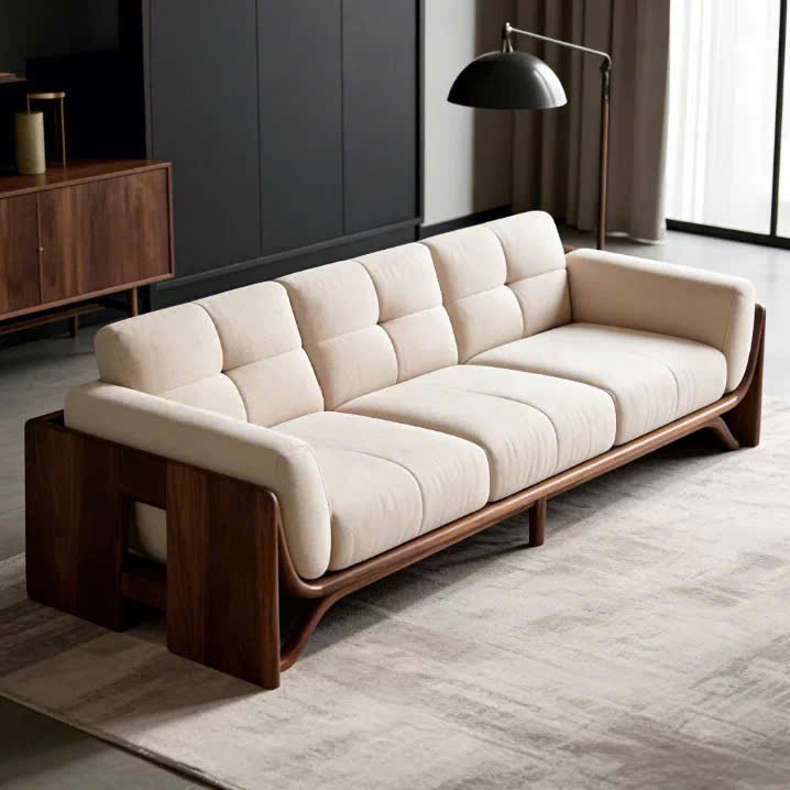 Sofa Gỗ Tự Nhiên VS127 Cao Cấp – Sofa Phòng Khách Khung Gỗ Uốn Cong Sang Trọng, Đệm Da/Nỉ Êm Ái Phong Cách Hiện Đại