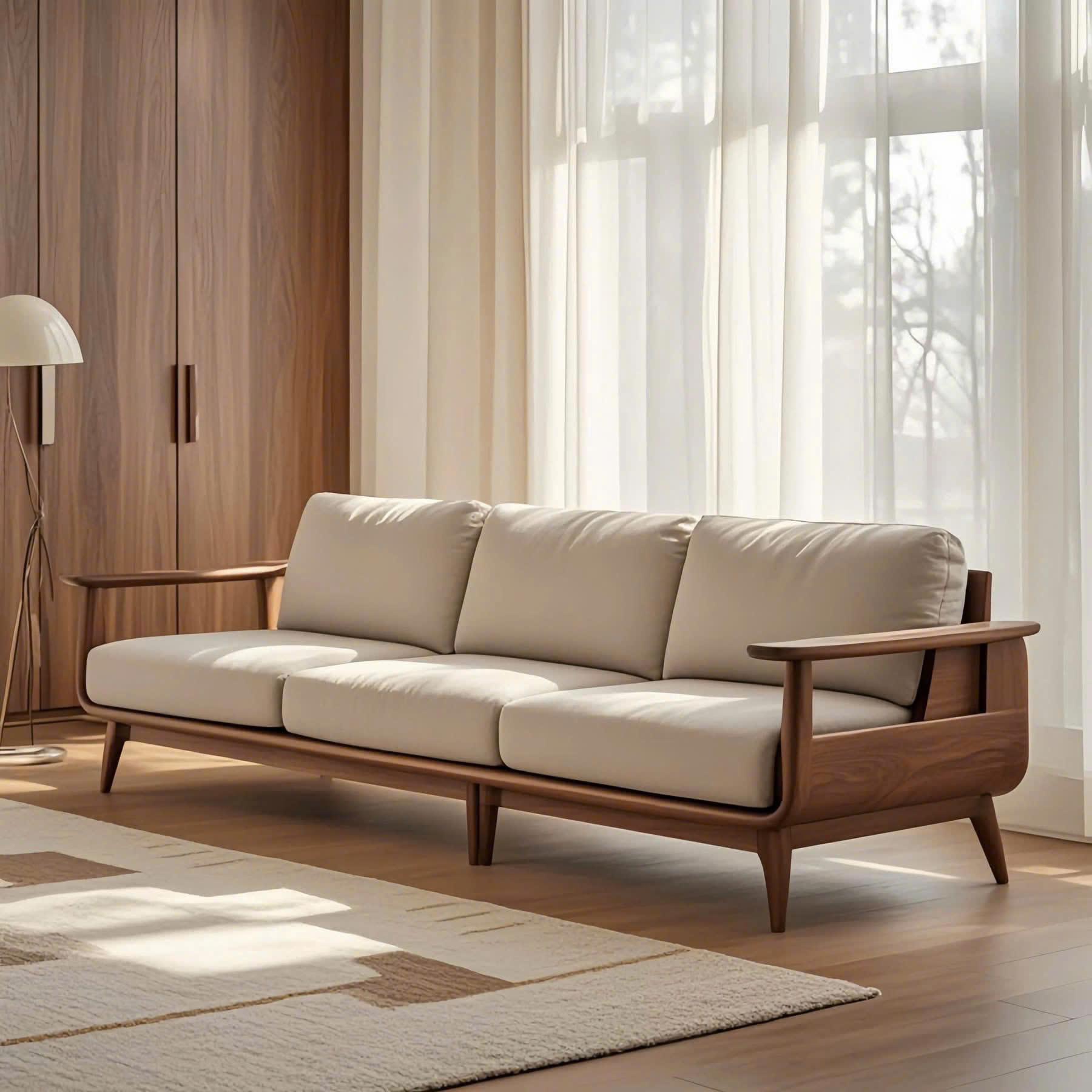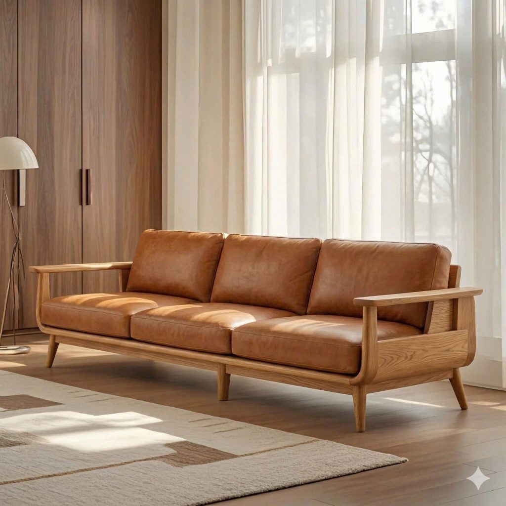 Sofa Gỗ Tự Nhiên VS73 Cao Cấp – Sofa Phòng Khách Khung Gỗ Uốn Cong Sang Trọng, Đệm Da/Nỉ Êm Ái Phong Cách Hiện Đại
