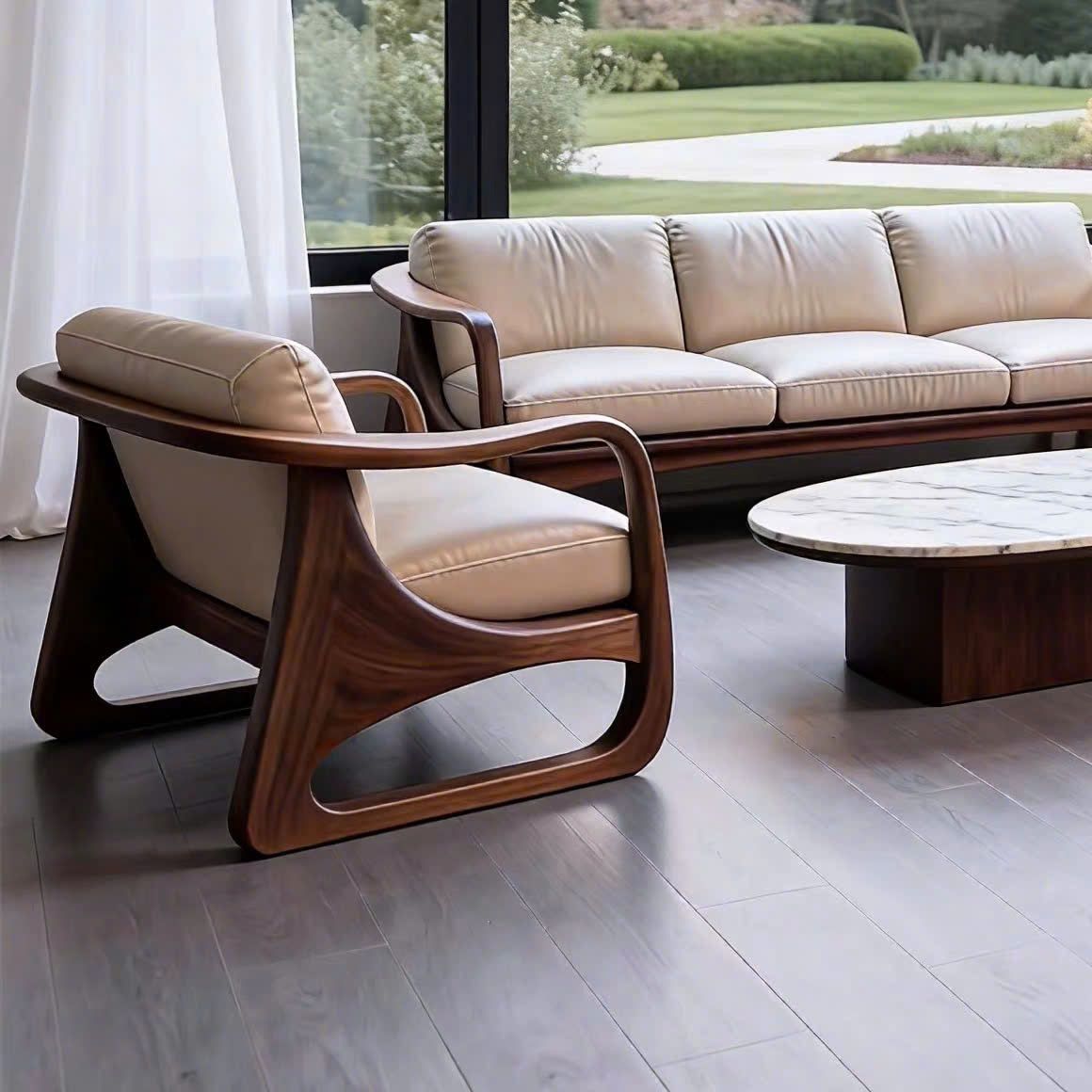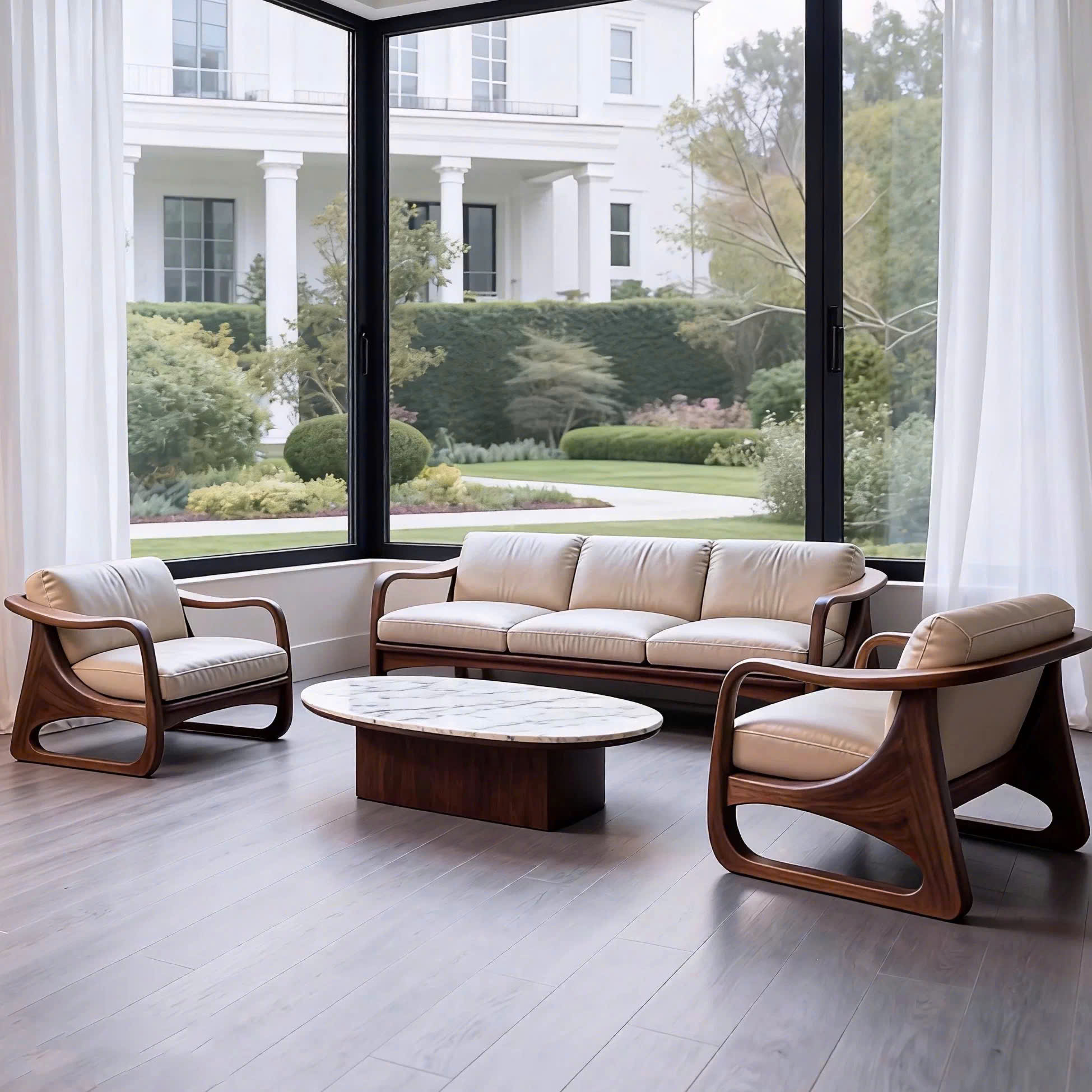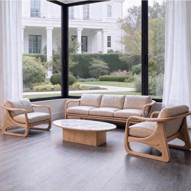 Sofa Gỗ Tự Nhiên VS83 Cao Cấp – Sofa Phòng Khách Khung Gỗ Uốn Cong Sang Trọng, Đệm Da/Nỉ Êm Ái Phong Cách Hiện Đại