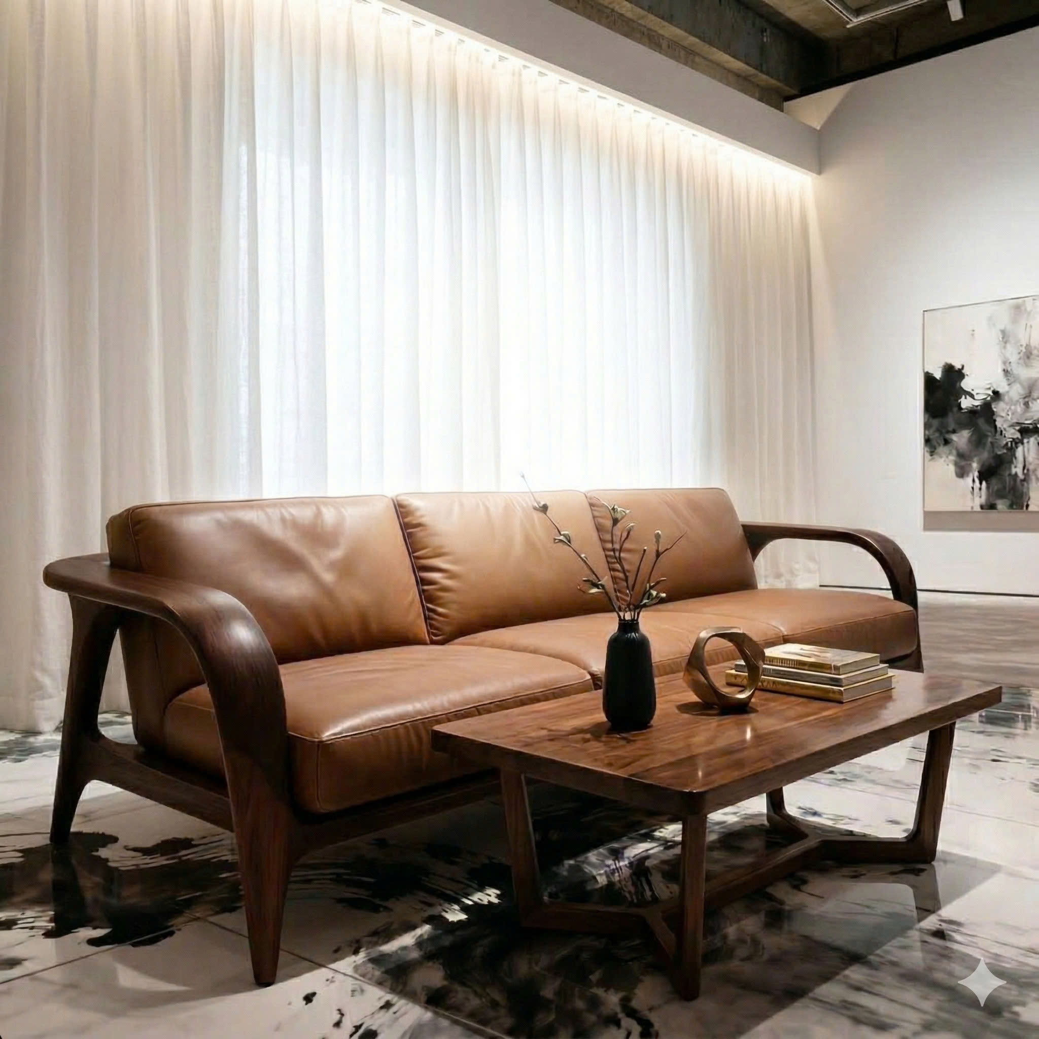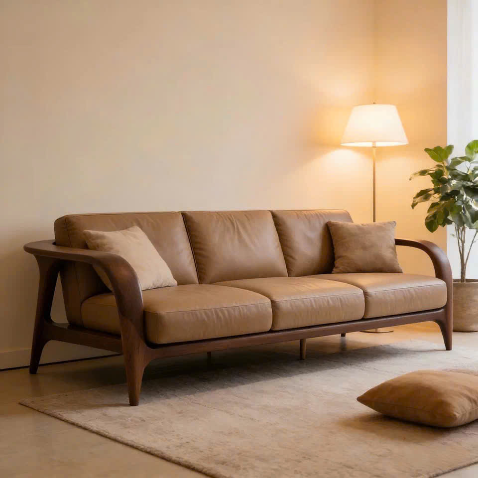 Sofa Gỗ Tự Nhiên VS86 Cao Cấp – Sofa Phòng Khách Khung Gỗ Uốn Cong Sang Trọng, Đệm Da/Nỉ Êm Ái Phong Cách Hiện Đại