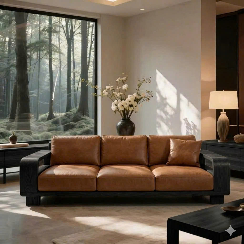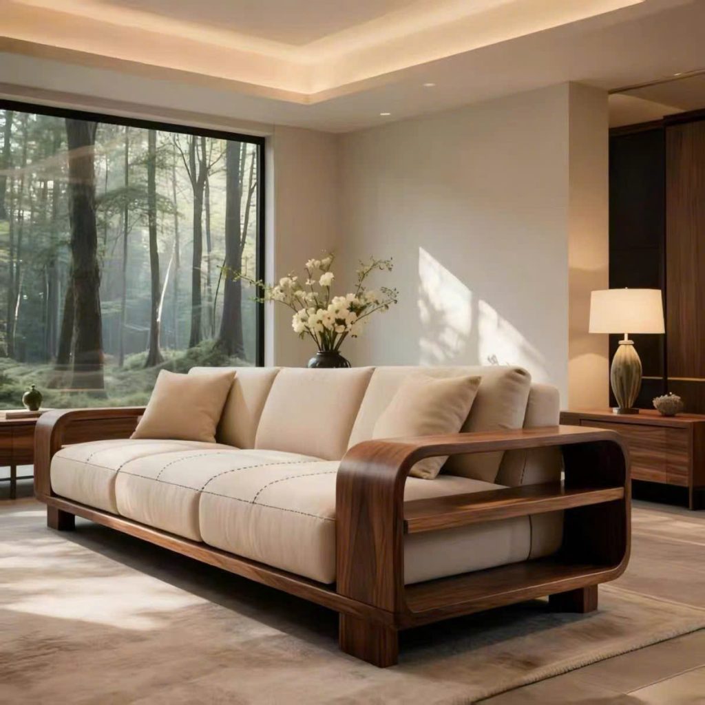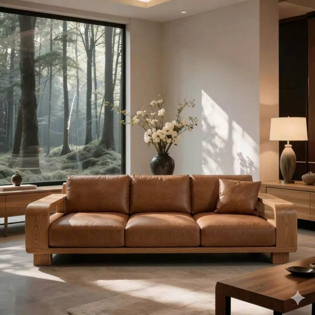 Sofa Gỗ Tự Nhiên VS89 Cao Cấp – Sofa Phòng Khách Khung Gỗ Uốn Cong Sang Trọng, Đệm Da/Nỉ Êm Ái Phong Cách Hiện Đại