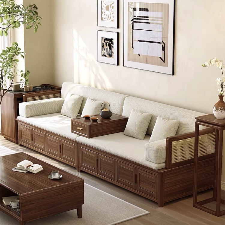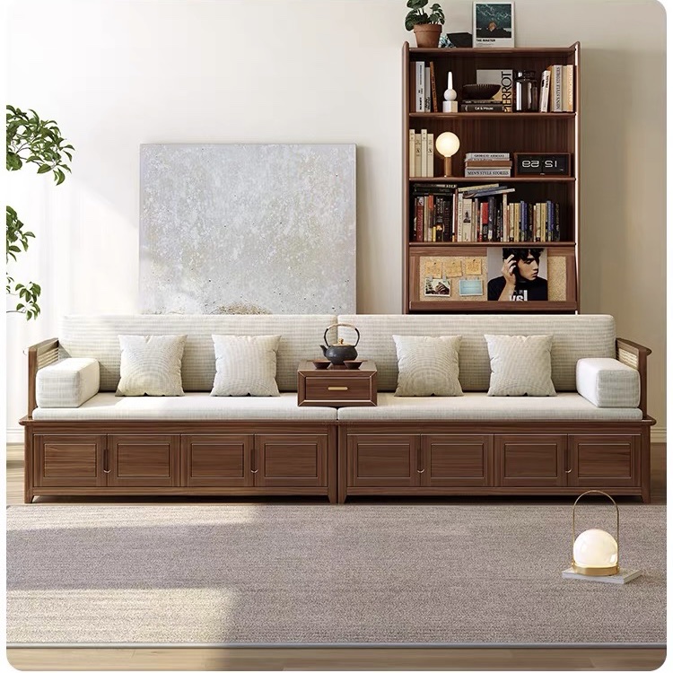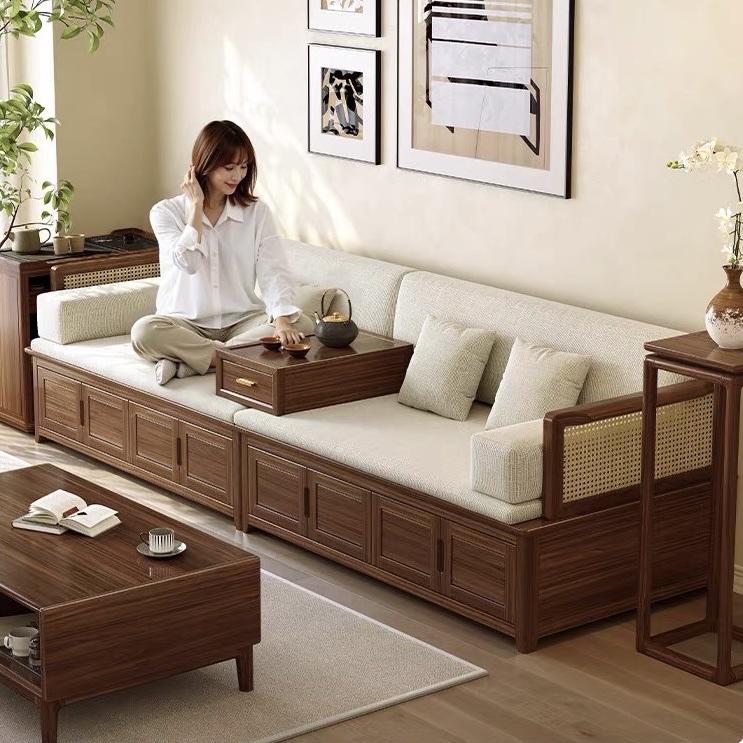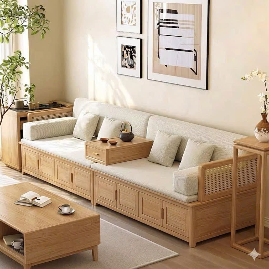 Sofa Gỗ Tự Nhiên VS132 Cao Cấp – Sofa Phòng Khách Khung Gỗ Phối Mây Uốn Cong Sang Trọng, Đệm Da/Nỉ Êm Ái Phong Cách Hiện Đại