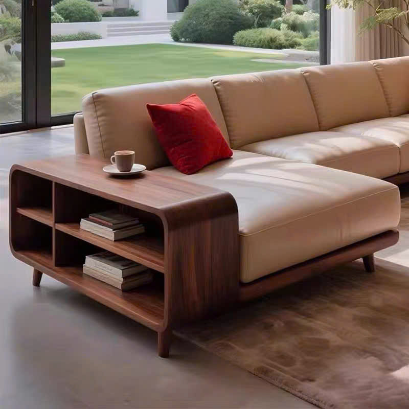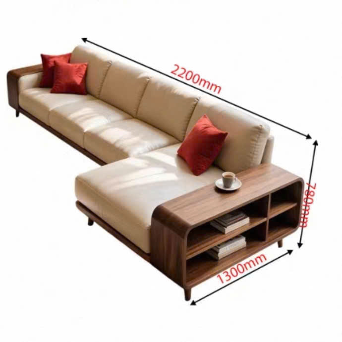 Bộ Sofa Góc Gỗ VS105 Kèm Hộc Tủ – Sofa Gỗ Tự Nhiên Phòng Khách, Ghế Sofa Đệm Da Cao Cấp Hiện Đại