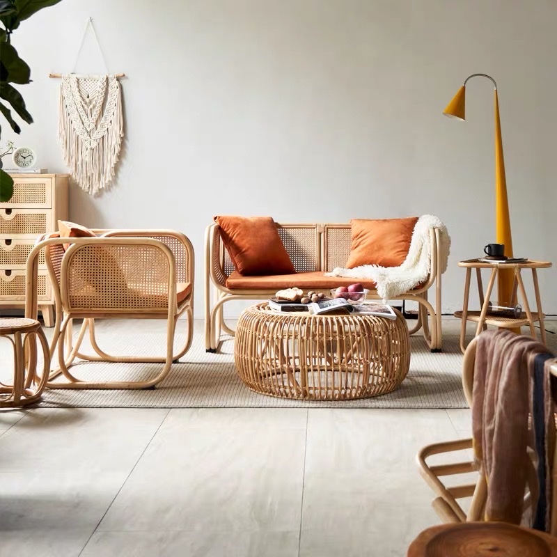 >Ghế sofa mây đơn VSM08 nổi bật với thiết kế khung mây bo tròn chắc chắn, đan thủ công tỉ mỉ kết hợp đệm ngồi + tựa lưng dày êm, chân đế tay vịn chắc chắn mang lại cảm giác ngồi thoải mái nhưng vẫn giữ được nét mộc mạc – tinh tế – sang nhẹ.