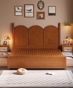 ✔ Đầu giường gỗ tự nhiên dáng vòm sang trọng – mộc mạc