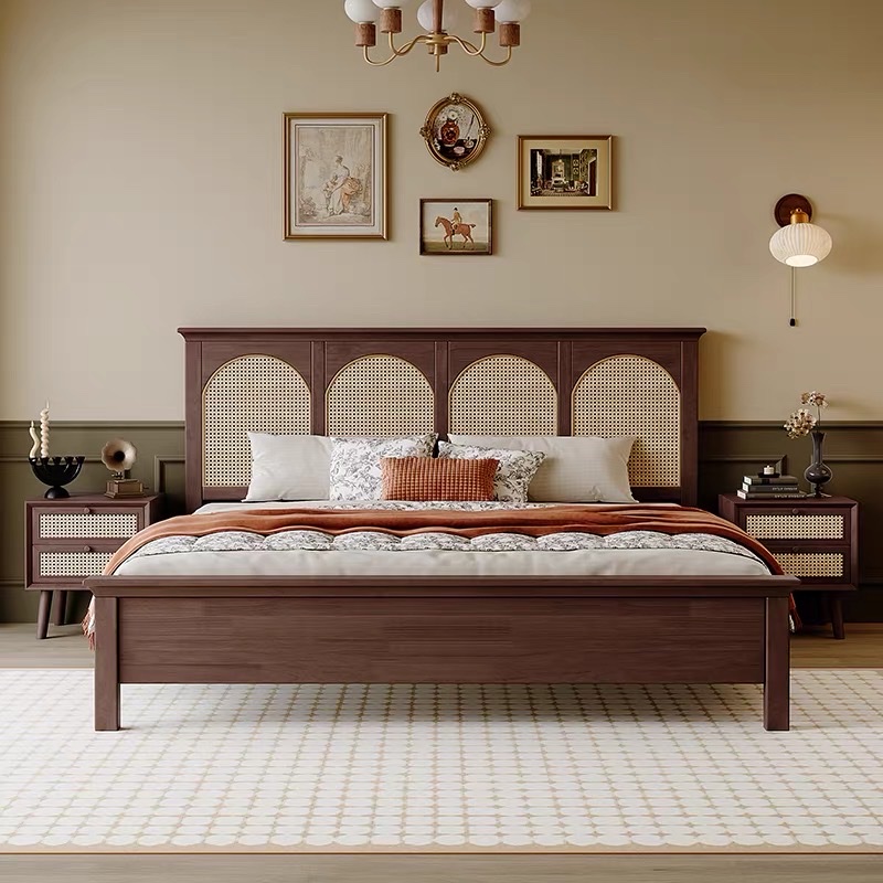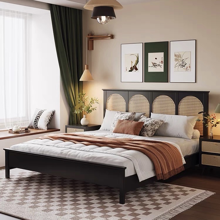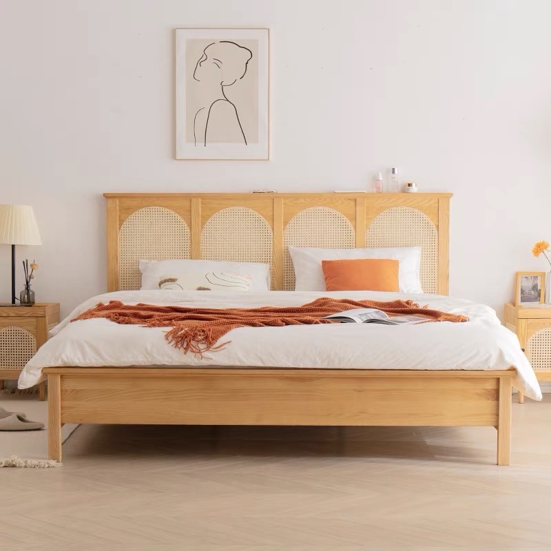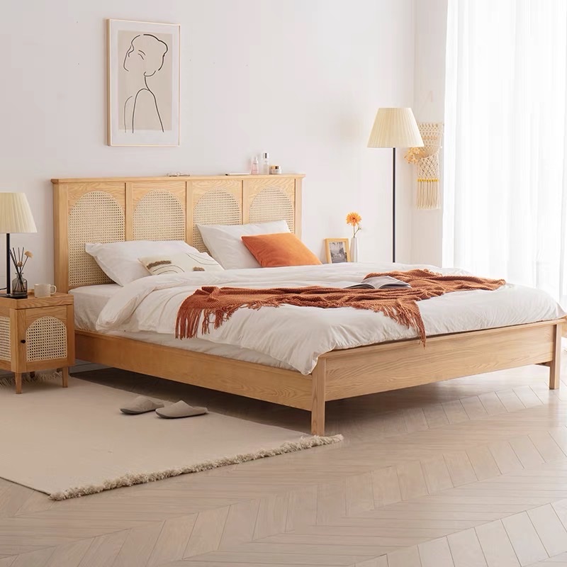 Giường ngủ Gỗ tự nhiên phối mây VG46