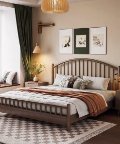 🛏️ Giường gỗ VG45 – Đầu giường nan gỗ đơn giản mà sang trọng, phong cách tân cổ điển