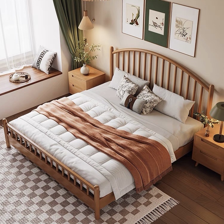 🛏️ Giường gỗ VG45 – Đầu giường nan gỗ đơn giản mà sang trọng, phong cách tân cổ điển