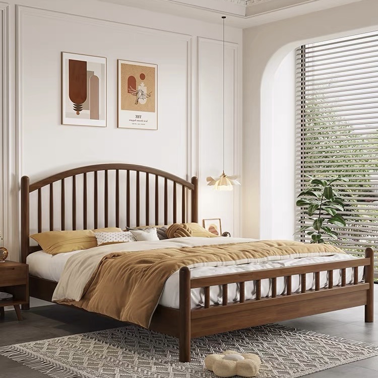 Giường gỗ VG45 nổi bật với thiết kế đầu giường khung nan gỗ, kết hợp trụ tiện hai bên tạo điểm nhấn cổ điển đầy tinh tế. Tone gỗ nâu ấm áp giúp không gian phòng ngủ trở nên ấm cúng – sang trọng – đẳng cấp.
