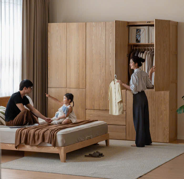 ✔ Màu gỗ ấm hiện đại, dễ phối nội thất phòng ngủ
